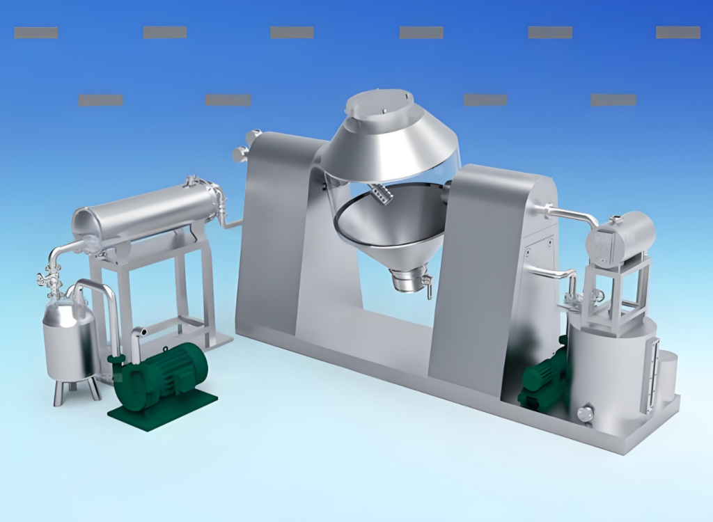 5. ** Uniform drying, solvent easy recovery ** : Because the material in the double cone is a "diamond track" movement, so that the material is heated evenly, the drying effect is consistent. At the same time, volatile organic solvents can be effectively recovered through a specific recovery system, which not only reduces environmental pollution, but also improves resource utilization.