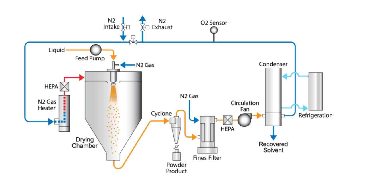 为保证粒径均匀,喷嘴和雾化器的设计至关重要。目前,采用高速离心喷头或压力喷嘴的方式,能够实现粒径在微米级别的控制。